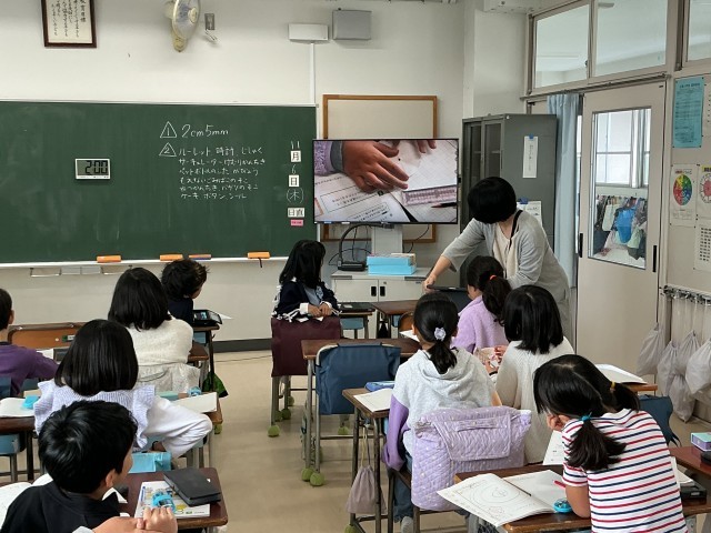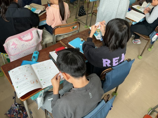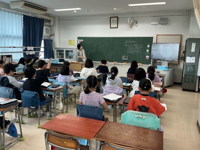 「円」の学習をしています。本日は,中心が分からない円の半径の長さを求める学習をしました。円の形に切ってある紙を使って,中心を探し,半径の長さを求めることができました。直径という新しい用語も学びました。