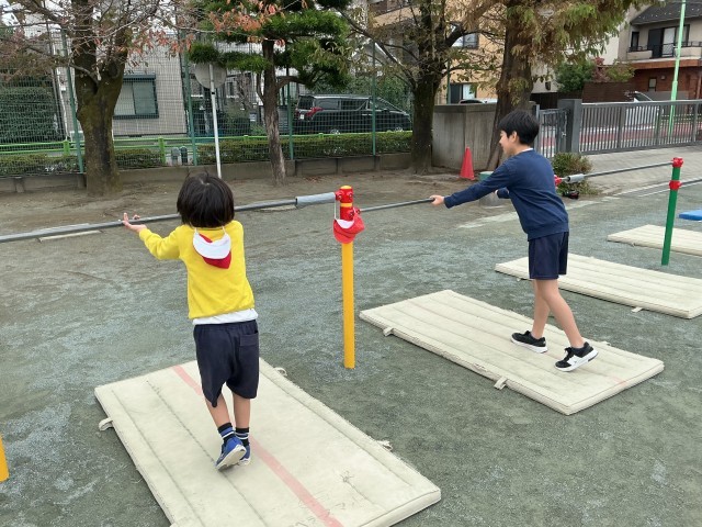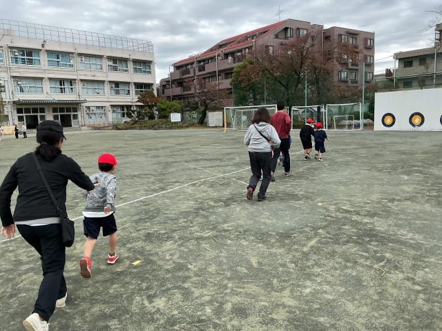 だいぶ気温が下がってきましたが、元気に運動できました。持久走では、4分間で何周走れるかの記録を目指して頑張りました。