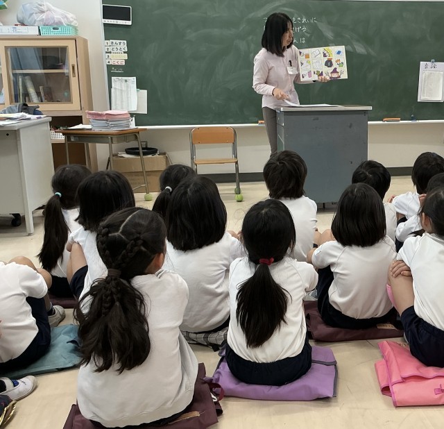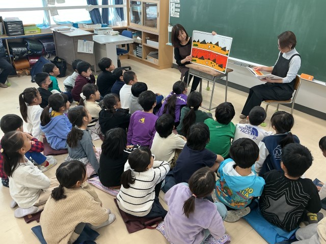 尾山台図書館の方々による,出張お話会がありました。紙芝居や大型絵本など,様々な読み聞かせを聞きました。