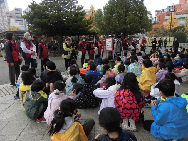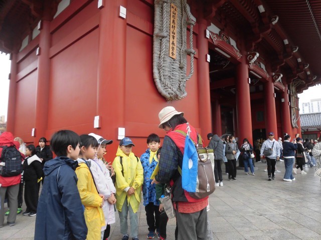 浅草では、班に1人ボランティアガイドの方が付いてくださり、仲見世通りや浅草寺、雷門のあたりを見学しました。ガイドの方の話は大変興味深く、浅草の町の歴史や変遷に理解を深めました。ガイドの方ごとに少しずつお話の内容も違っていたので、最後は新聞にまとめたものを互いに見合って、今後の学習に活かしていきたいと思います。