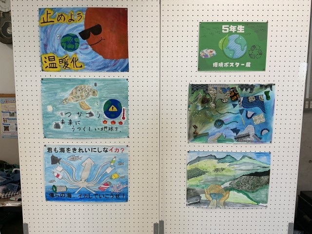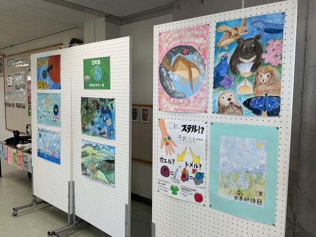 5年生が総合的な学習の時間に行っているSDGsの取り組みで、夏休みにポスターを描きました。