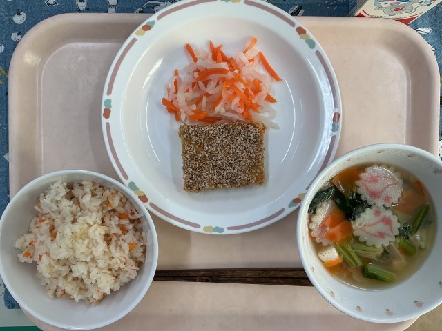 初日の出の朝焼けをイメージした「あけぼのごはん」、裏表がなく、正直であれという願いを込めた「松風焼き」、おめでたい色合いの「紅白なます」、すまし汁には、縁起の良い象徴である富士山を入れました。