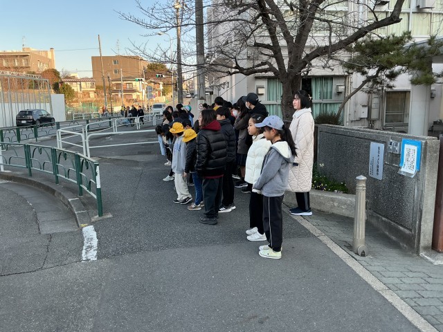 尾山台中学校の皆さんと元気にあいさつを行いました。