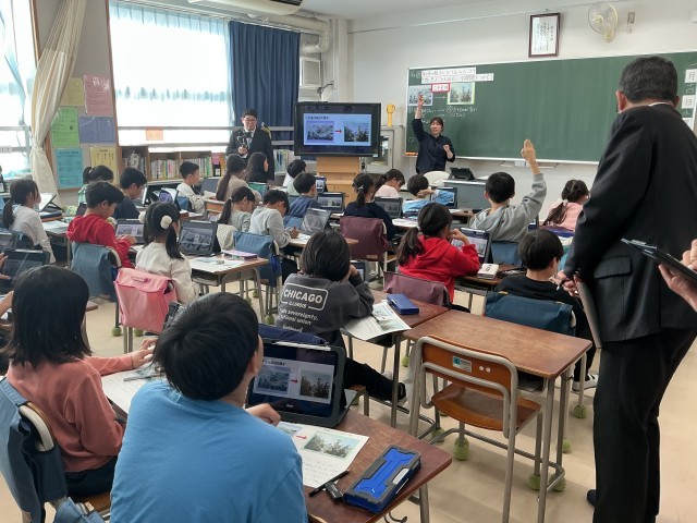 4年生の算数と3年生の社会の授業があり区内の先生方がたくさん来校されました。