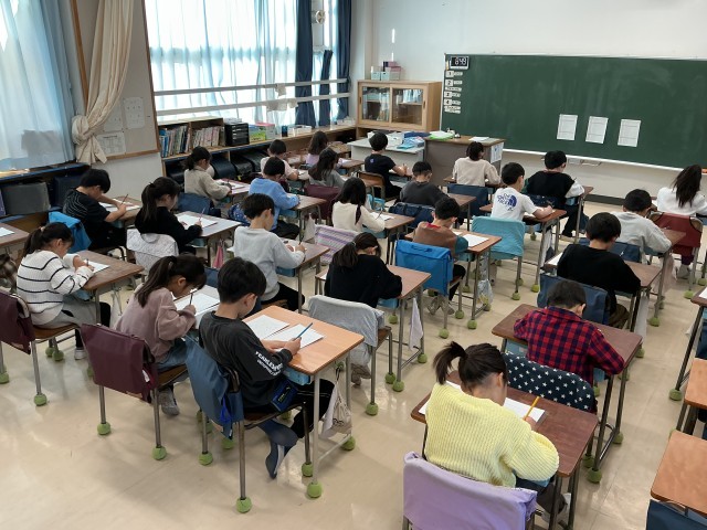2年生は,硬筆で書き初めをしました。姿勢を正して,お手本をよく見て,ていねいに書きました。