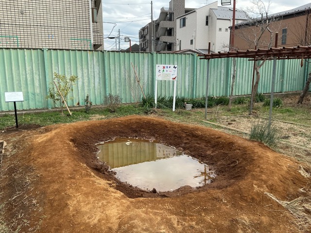 ビオトープの様子 今後も手入れを行い、生き物が来てくれる環境をつくります。