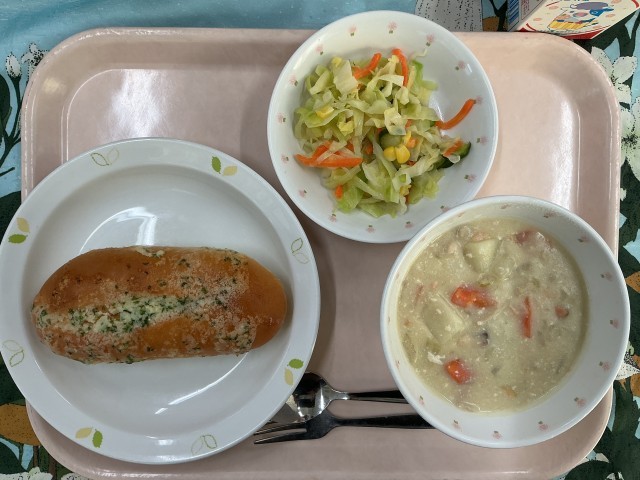 ホワイトシチューには、鮭の角切りを入れて作りました。