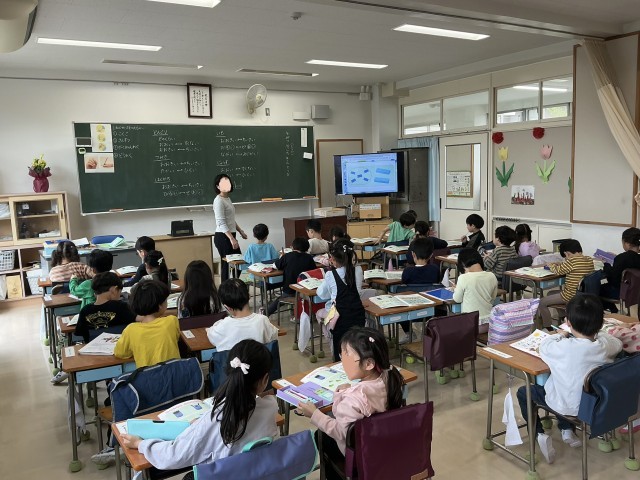 A組での初めての算数の授業でした。数の表し方にたくさん手が上がりました。みんなで声を合わせて答えを発表している様子です。