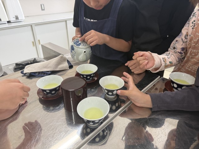 お湯を沸かして、急須に入れて注ぐ体験に子ども達は目をキラキラさせながら意欲的に取り組んでいました。