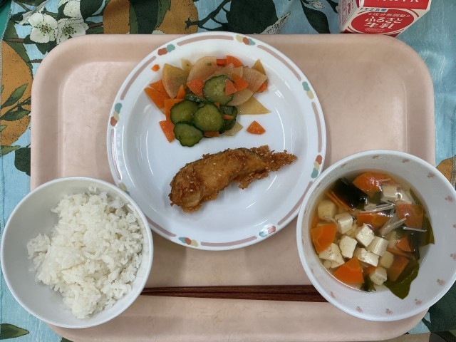 今日の魚はホキという白身魚です。骨がなく、揚げた時に身割れという魚が崩れることなないので、給食の揚げ物ではよく使われる魚です。
