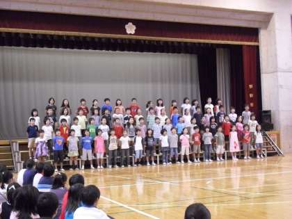 まずは、3年生がみんなの前で歌い、その後全員で合唱しました。