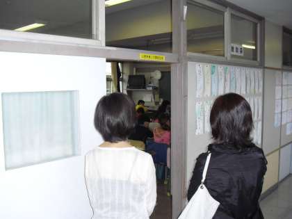 あいにくのぐずついた天候にもかかわらず、大勢の保護者、地域の方々が子どもたちの様子を見るために足を運んでくださっています。午後には学校協議会で避難所運営訓練が行われます。