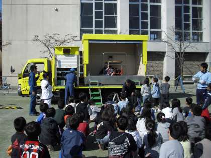 毎月全校で実施している避難訓練、今日は地震発生を想定して行われました。その後、4年生は起震車のよる体験をしました。震度7の揺れを体感した子どもたちは、改めて地震の怖さと身を守るための方法について考えることができたようです。