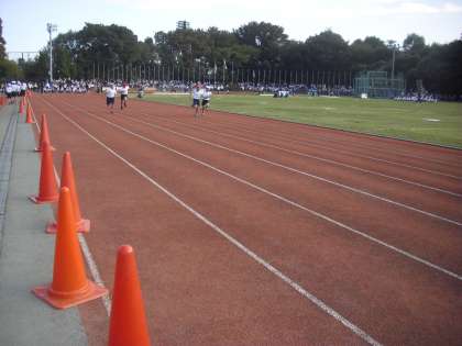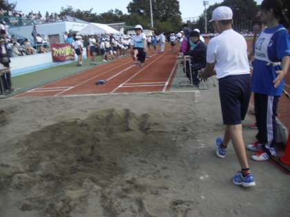 走り幅跳び、ハードル走、100m走、高跳びと個人種目が始まりました。初めは、女子からです。