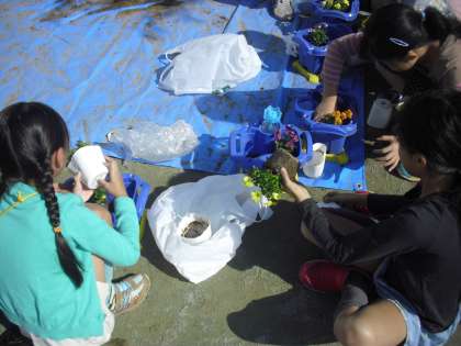 2年生が花の寄せ植えを