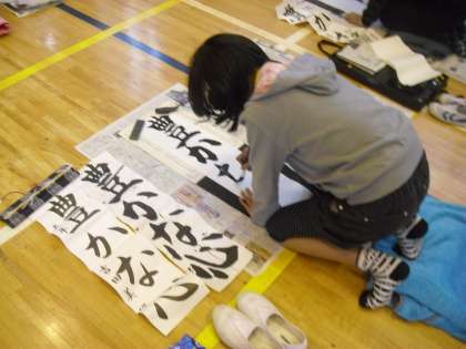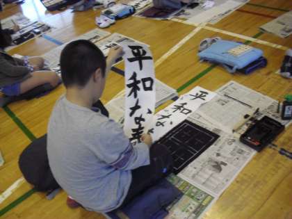 5年生は「豊かな心」6年生は「平和な春」を書きました。
