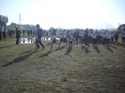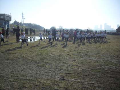 恒例のマラソン(持久走)大会を行いました。1・2年生は、集団走、3年生以上は、各自のペースで、男女別に行いました。心配しました天候もマラソンに丁度いい天候で、子どもたちは元気に走りました。初めは2年生です。