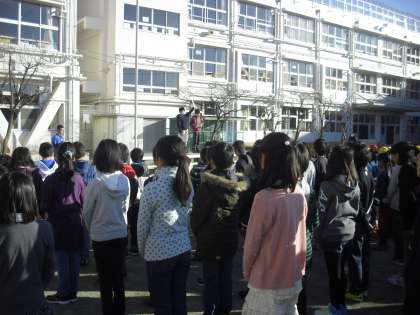 今日の朝会で、3つの委員会からお知らせがありました。運動委員会からは、今日から休み時間に「低学年の皆さんに短縄の跳び方を教えます。教わりたい子は、休み時間に朝礼台前に集合してください」でした。保健給食委員会からは、「バイキンゼロキャンペーン」のお知らせでした。インフルエンザが流行している時期でもあり、カードを作成して取り組みます。最後に、飼育栽培委員会からで、亡くなってしまったウサギの後継者が、他校の地域の方から譲っていただけることになり、学校に来たら皆さんにお披露目し、名前を募集します。ということでした。