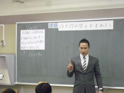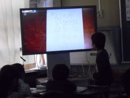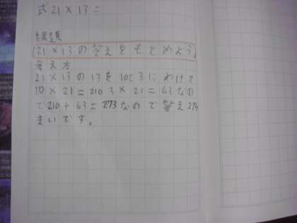 昨日第3学年で、今年度最後の研究授業を行いました。二桁の掛け算で、児童はこれまで学んだことを活かして取り組みました。21人に13枚の折り紙を配るとういしっかりコースの問題、20人に13枚の折り紙を配る「じっくりコース」の問題、21人に17枚の折り紙を配る「チャレンジコース」の問題と取り組むクラスで、問題を変えて行いました。