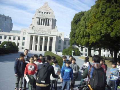 社会科見学に、国会議事堂、朝日新聞社、科学技術館に行きました。初めは、国会議事堂です。参議院の本会議場を見学しました。