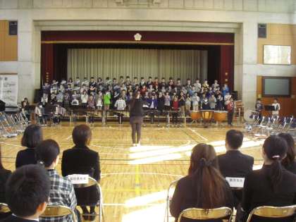 本日、感謝の集いを開き、教職員を招いてくださいました。開会の言葉の後、保護者、児童の言葉のなどが行われました。