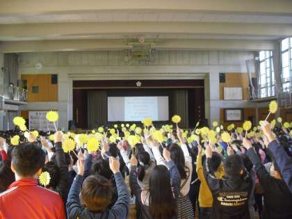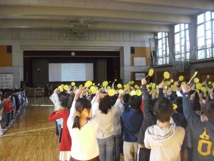 明日の6年生を送る会で歌う「ひまわりの歌」の練習を1〜5年生で行いました。