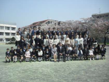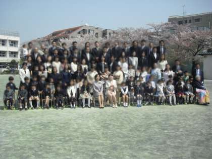 最後に校庭で記念写真を撮りました。外は、お日様も顔を出し、みんなを祝ってくれていました。