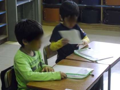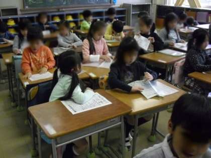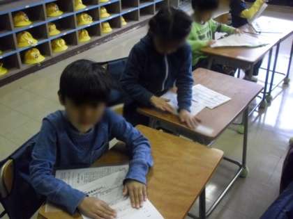学校では、多くのお知らせが配られます。それらを自分で、「丁寧に、きれいに、早く」折って連絡帳の袋にしまうことが必要です。みんなとても真剣でした。