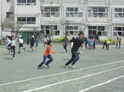 晴天の下、固定遊具で遊んだり、鬼ごっこをしたり、ボール遊びをしたりと、みんなのびのびと校庭での休み時間を楽しんでいました。