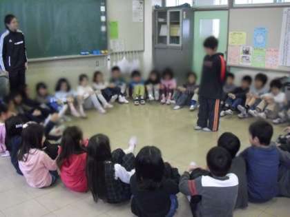 3年生は、クラスのみんなが集まって「震源地」ゲームをしていました。ルールを守りながら楽しんでいました。他の学年は、お友達とお話をしたり、絵を描いたり本を読んだりと、上手に教室の中で過ごしていました。落ち着いていてとても良いです。