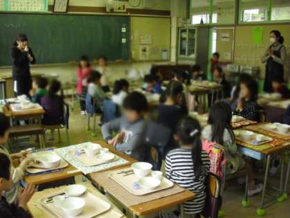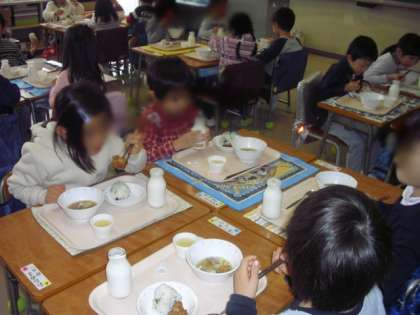 4/14 1年生給食開始しました2 公開日 2015/04/15 更新日 2015/04/15 できごと 「わかめごはん、おいしいな。」「豚汁、おかわりないですか。」など、初めてとは思えないくらい上手に食べられた1年生です。もぐもぐタイムやはじめと終わりのあいさつもきちんとできました。 いいね(0)