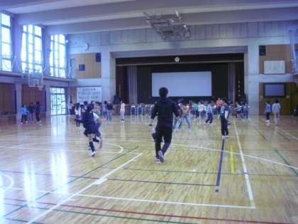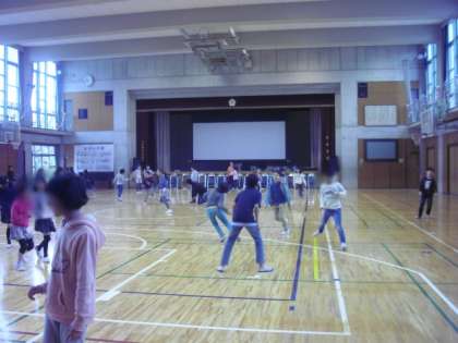 今日も残念ながら雨のため校庭で遊べません。今日は4年生が体育館で遊べる日です。担任の先生も一緒になって、元気いっぱいに氷おにで遊びました。体が暖かくなったそうです。
