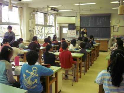 3年生は、かけざんのきまりについて勉強していました。図をつかって、7×7を、7×2と7×5に分解して答えを合わせても同じになることを説明していました。よく手を挙げ、落ち着いてしっかり学習していました。