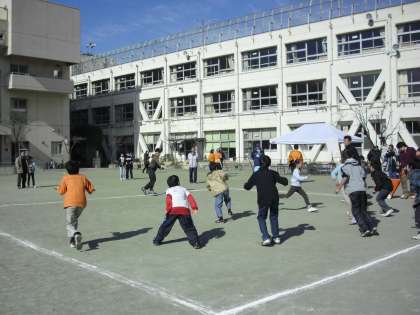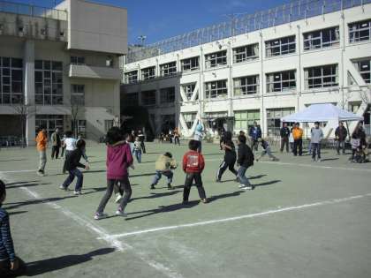 新型インフルエンザのため延期されていた「もちつき&ドッジボール大会」ですが、今回はノロウィルス感染予防のため、もちつきはできませんでしたが、ドッジボールとバザーが23日(土)に校庭で行われました。99名もの子どもたちが参加したドッジボール大会では、白熱した試合が展開されました。高学年の子どもが低学年の子どもに、ボールを譲ったり、そっとボールを投げる姿がほほえましかったです。