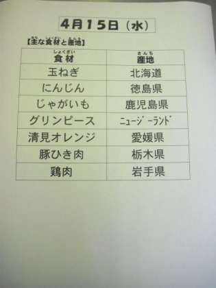 4/15 今日の給食
