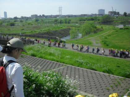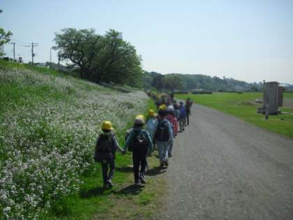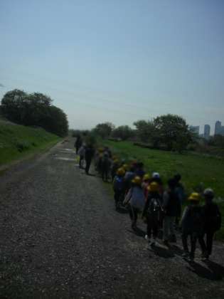 多摩川台公園までの道中は長いですが、2年生が1年生に話しかけたり、励ましたりしながら、手をつないで歩きました。