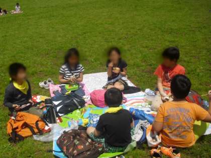 青空の下でおいしくお弁当を食べました。おうちの方々の愛情を感じました。