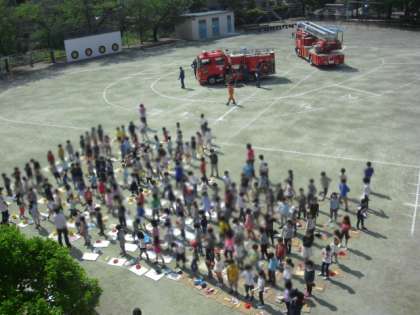 消防士さんたちとごあいさつをした後、各クラスに分かれて、はしご車かポンプ車をかき始めました。間近に見る消防車は、とても大きく見えます。それを1・2年生のみんなは、画面いっぱいにかきました。消防士さんからも、ほめていただいていました。