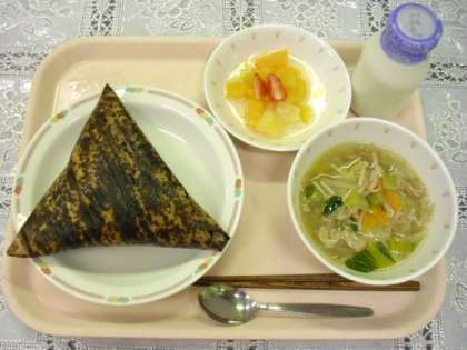 5/1 今日の給食 公開日 2015/05/01 更新日 2015/05/01 給食 献立は、中華ちまき、ワンタンスープ、フルーツポンチ、牛乳です。 子どもの日の行事食です。竹の皮で包むことで、「悪い気を追い払う」と言われています。玉堤小の子どもたちの成長をお祈りします。 竹の皮を上手にはがして食べる子、「変わったにおいがする」と言う子、全部食べた後、きれいに三角に折りたたむ子、いろいろでした。 いいね(0)