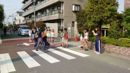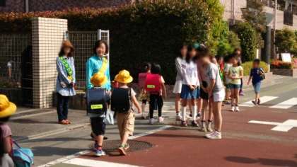 保護者、地域の皆様、先生方も一緒にあいさつをしています。