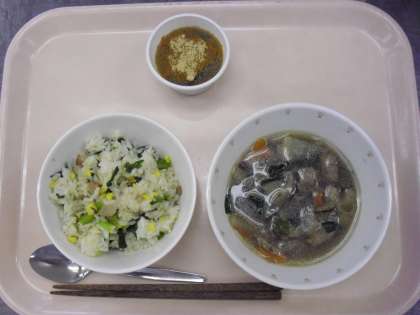 今日は、江戸川区で作られた小松菜を使って小松菜ごはんにしました。