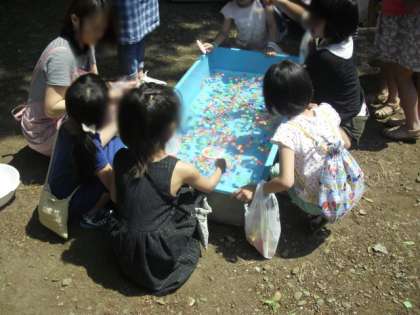 子どもたちは、様々な遊びと景品を抱え、とても楽しそうでした。