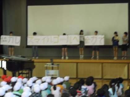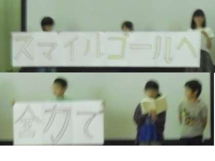 5/14 スローガンの発表 公開日 2015/05/14 更新日 2015/05/14 できごと 「協力し スマイルゴールへ 全力で」 代表委員会のみんなが真剣に話し合い決定した運動会のスローガンを発表しました。このスローガンに込められた願いを胸に、みんなが良かったねと思える運動会の実現に向けて、取り組んでいきます。すばらしいスローガンができました。 いいね(0)