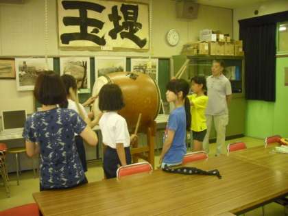 運動会の全校演技玉堤音頭に向けてたいこの練習がはじまりました。