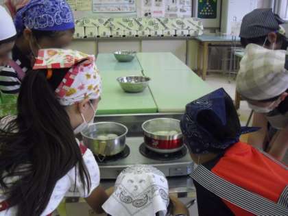 まず、手順を学習しました。そして身支度を整え、いざ調理開始!!