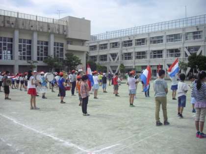 5/25 鼓笛練習 公開日 2015/05/25 更新日 2015/05/25 できごと 56年生合同の鼓笛パレードの練習がありました。リズムに合わせ足並みをそろえて演奏することはとてもたいへんです。「ぴしっと姿勢よく!」、「かかとをあげて。」先生の指導の声が響きます。みんながそろうには、気持ちを一つにしていかなければなりません。 いいね(0)