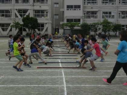 まずは、3・4年生の棒引きと玉堤Flagキッズです。