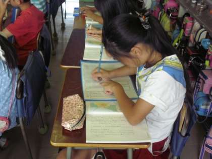 国語で地震に関する説明文の読み取りをしています。P波やS波、緊急地震速報のことなど内容は難しいです。5年生のお友達は、読み取った内容をワークシートにまとめていきました。