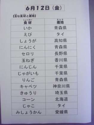 6/12 今日の給食