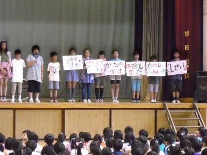 今日の朝は、保健給食委員会が食事マナーについて発表しました。給食の時間の前にふり返っているクラスや、「ごちそうさまでした」を栄養士や調理師に会ったら直接言ってくれる子が多くいました。